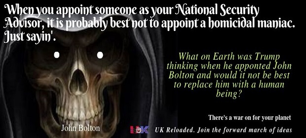 With National Security Advisor John Bolton salivating at the prospect of a war with Iran, the slaughter of lots of people and the embroiling of the US in yet another needless conflict and mustering whatever flimsy pretexts will serve his satanic purpose, it is clear that the article’s writer had the full measure of the man.