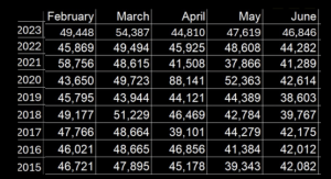 I showed data by month for nine years – 2015-2019 for five years of a rudimentary # “benchmark” and monthly data for the “year of the scamdemic” and three years of monthly data subsequent of the rollout of C19 injections.