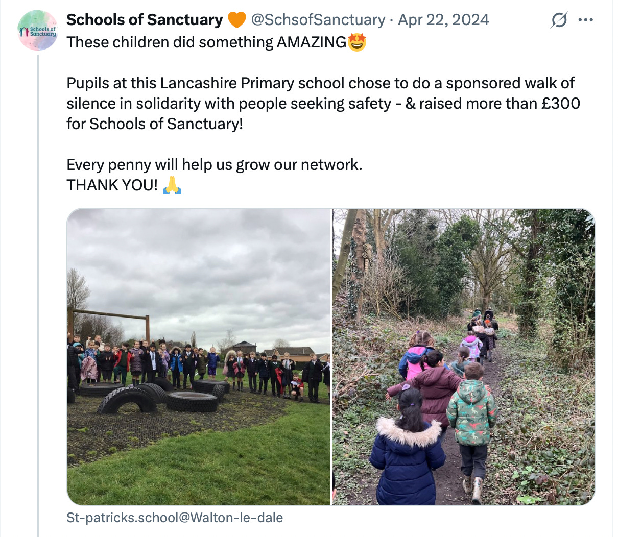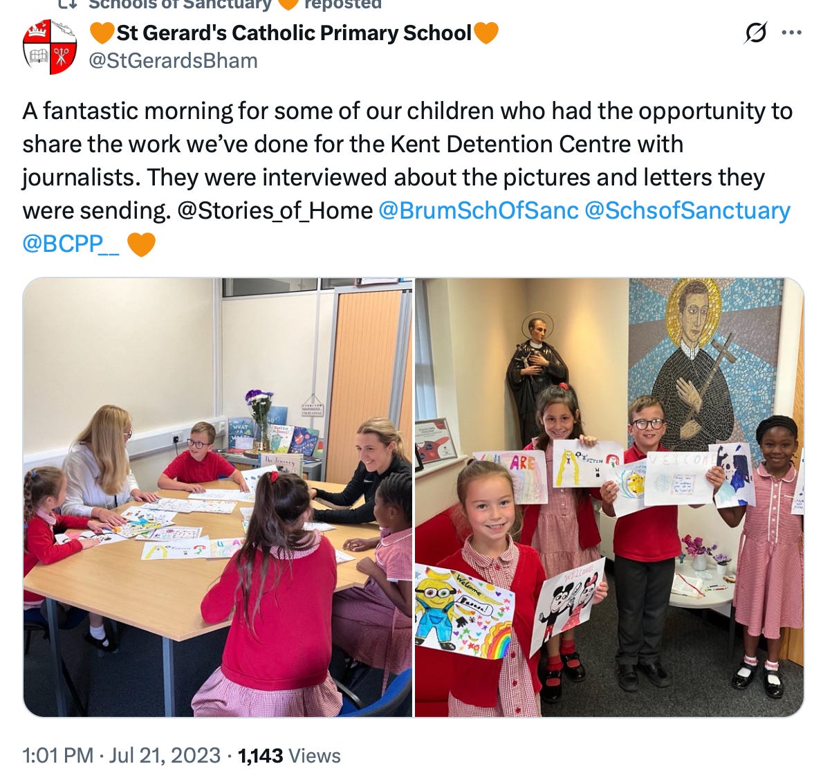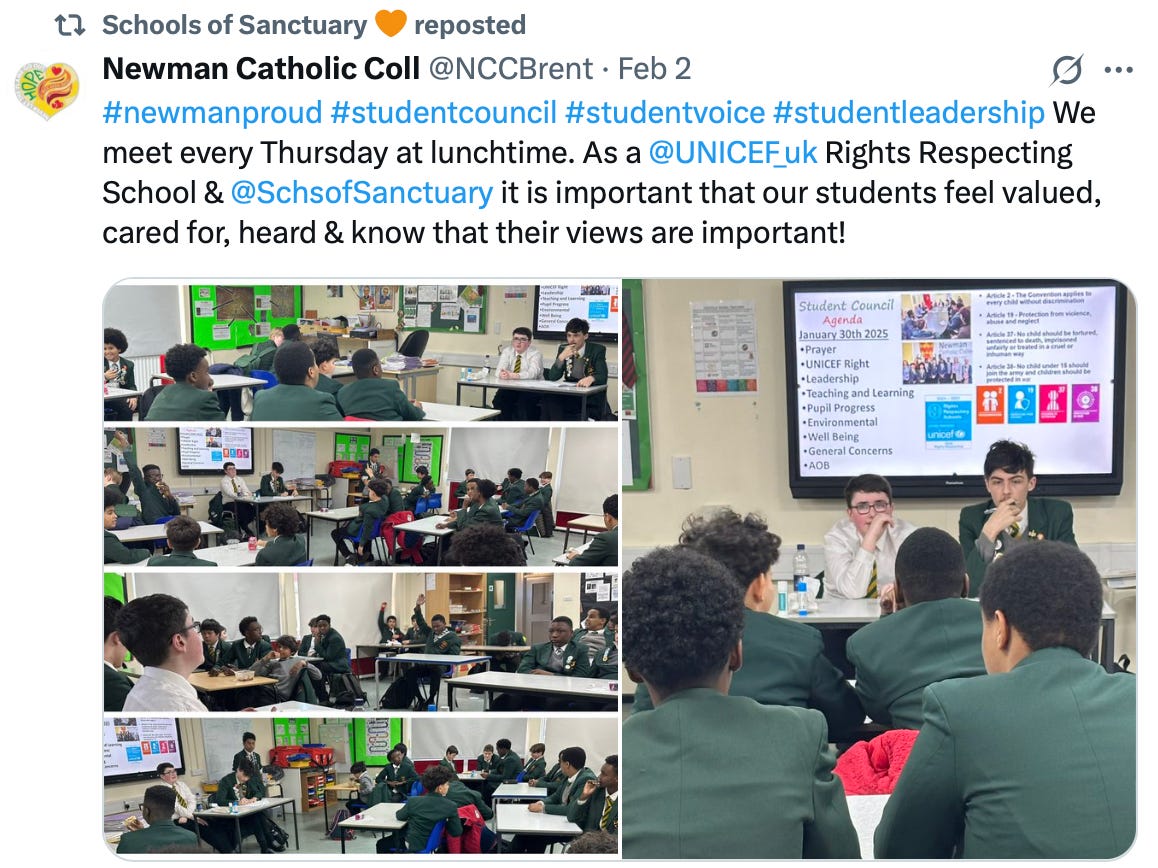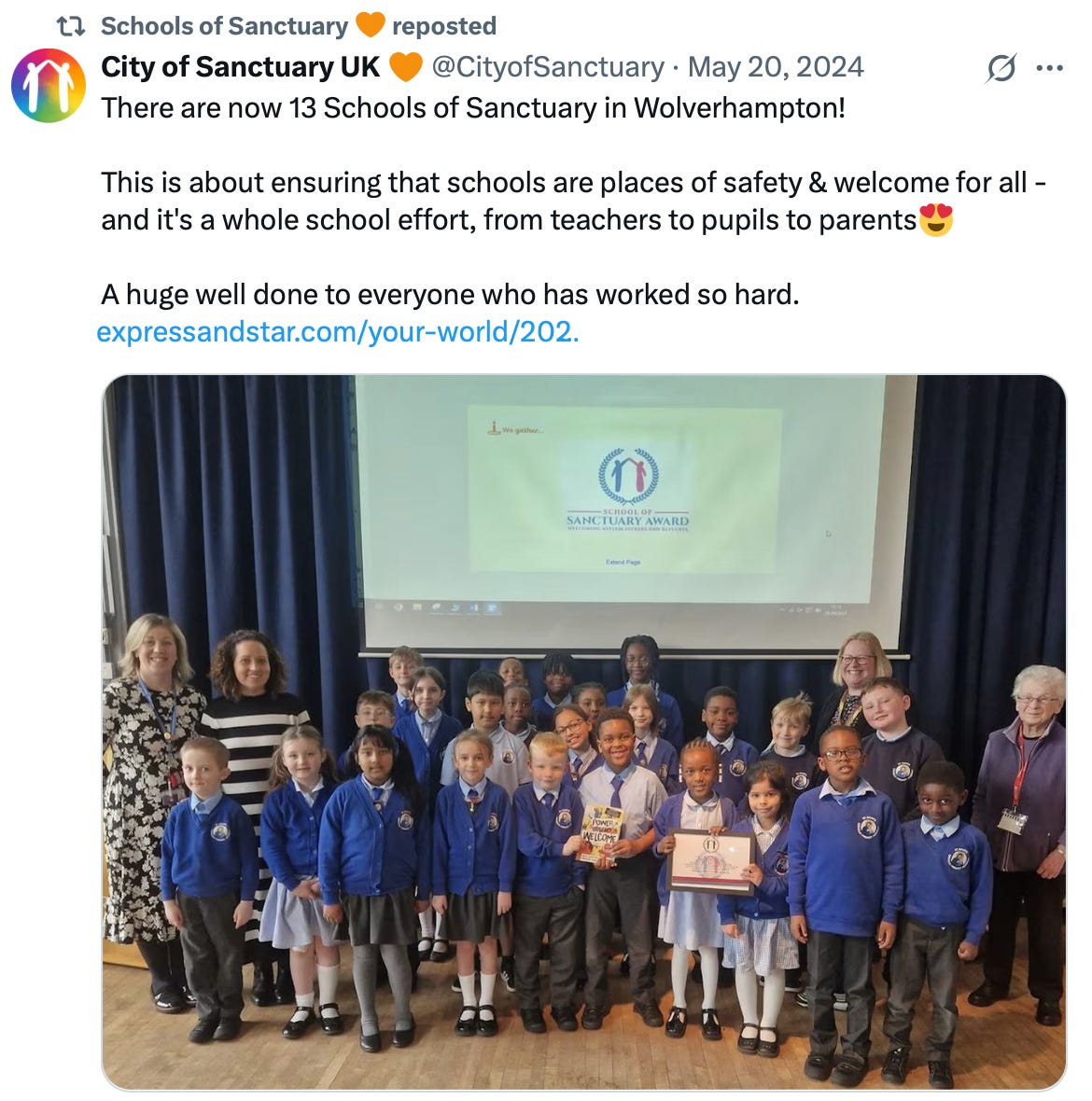 I am consistently being blocked on X as a result. “Schools of Sanctuary” is the latest to do this to my account: