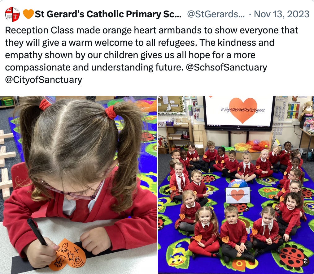 Schools are also encouraged to make a donation to City of Sanctuary to show their “solidarity”: