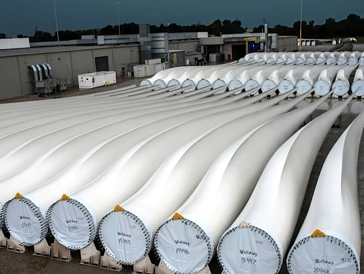 Top image of fiberglass wind turbines via History Of Simple Things/YouTube screencap