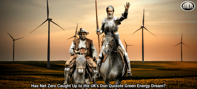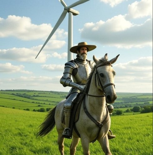 the UKs Green Energy Policies meet Don Quixoe – Created by Grok on X