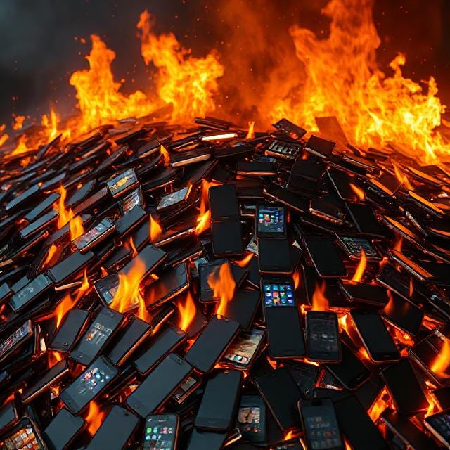 With no smart devices, including phones, they cannot map and track everyone, everywhere – which they are currently doing of course.