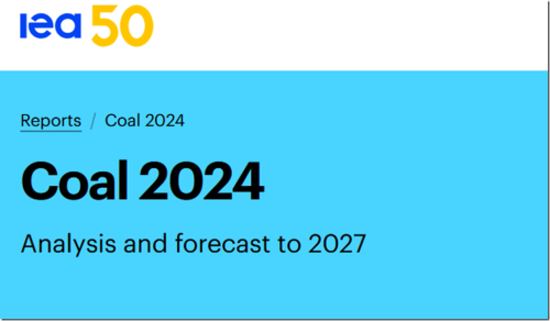 Today, the IEA released its Coal 2024 report, which says global coal use will grow by another 1% this year to an all-time high of 8.77 billion tons.