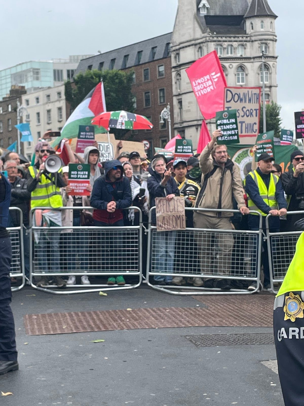 The counter-demonstration, organised by the group “United Against Racism”, included a mix of left-wing groups and organisations, including the political parties the Irish Social Democrats and Trotskyite People Before Profit.