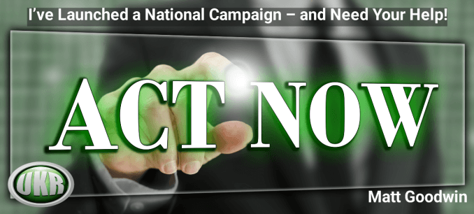 This article (I’ve launched a national campaign -and need your help!) was created and published by Matt Goodwin and is republished here under “Fair Use” with attribution to the author Matt Goodwin