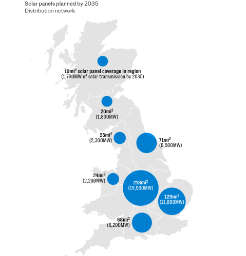 For East Anglia and the South East, around London, up to 150 sq miles of panels would be needed.