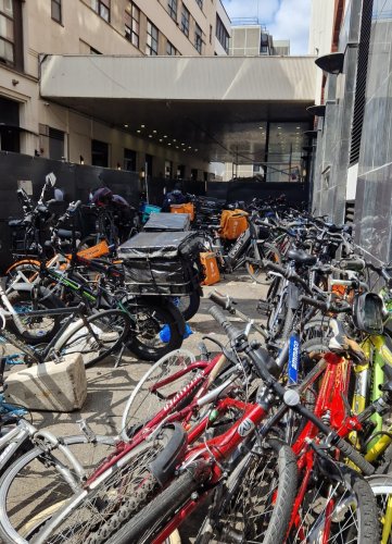 Piles of bikes outside a migrant hotel. Credit: Paul Edwards, the Sun