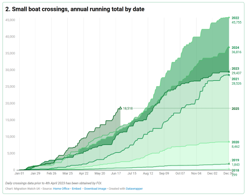 As we predicted last week, the number of migrants crossing the Channel surged over 18,000 this week, with over a thousand people crossing on Saturday and Sunday. It will almost certainly go over 19,000 this weekend!