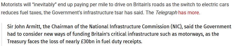 Also deemed ‘inevitable’’ for drivers is pay per mile because according to the government we must eliminate fossil fuels to save the planet. As China permits two coal plants to be built per week!