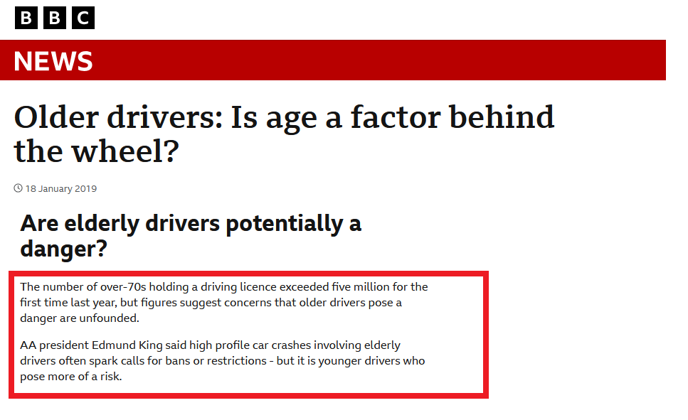 Are elderly drivers putting people at greater risk of harm than non elderly?