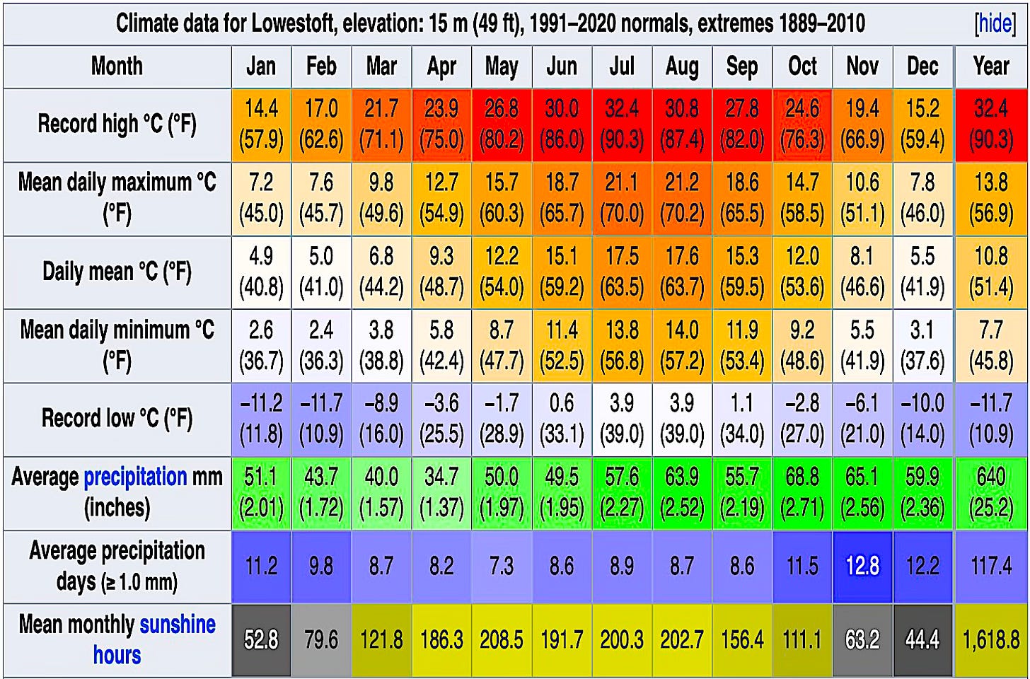 It might be suggested that the public interest is not best served by monthly temperature figures for Lowestoft being presented until a few days ago as follows (the two columns on the left after the year and month claim a monthly average based on daily highs and lows):