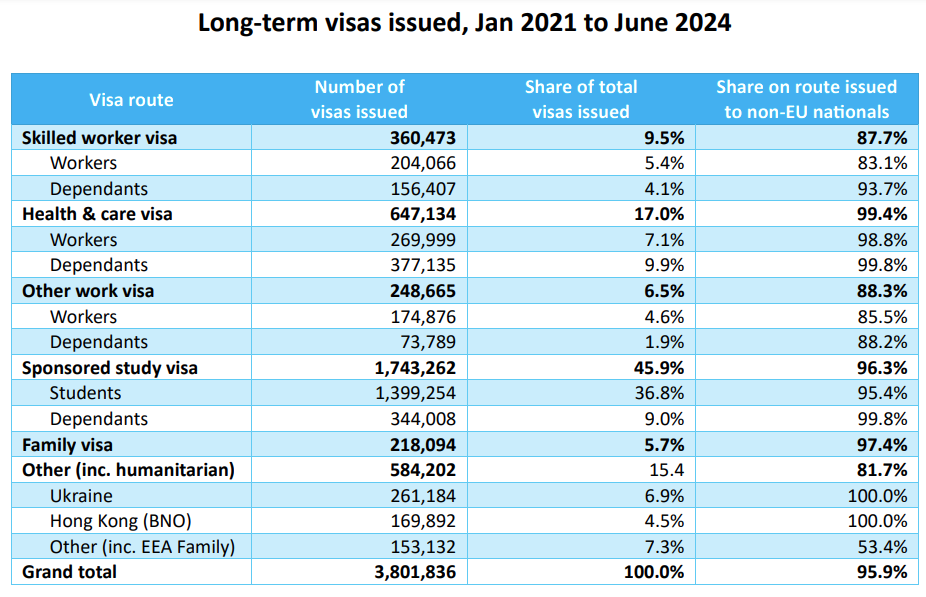Of the nearly 4 million visas that were issued, skilled workers comprised just 204,000. In other words, just one in every twenty people who came to Britain on long-term visas between 2021 and 2024 were skilled workers —which is completely insane!