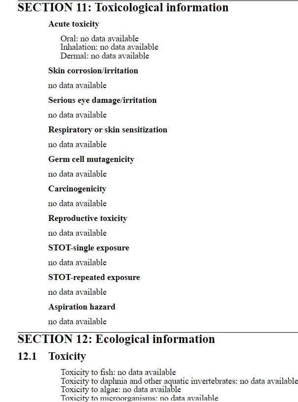 You can learn a lot from safety data sheets – and they’re not hard to understand, so nobody has an excuse for not reading .them. In the case of vitamin B-1, if we continue to scroll down the sheet, we discover it is considered hazardous, which is why the manufacturer warns against using it as a pesticide or biocide (also known as “releasing it into the environment”.)