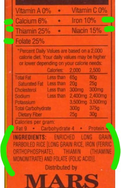 So, it looks like rice that has been fortified and enriched with “vitamins” all have the same ingredients; time to discuss them:
