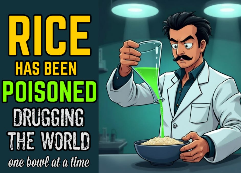 Hypothetically speaking, if you wanted to drug as many people as possible, how would you do it (other than the air or water supply)? Answer: Rice. Rice is the most popular food in the world. In fact, it’s a primary staple food for more than 50% of the world’s population.