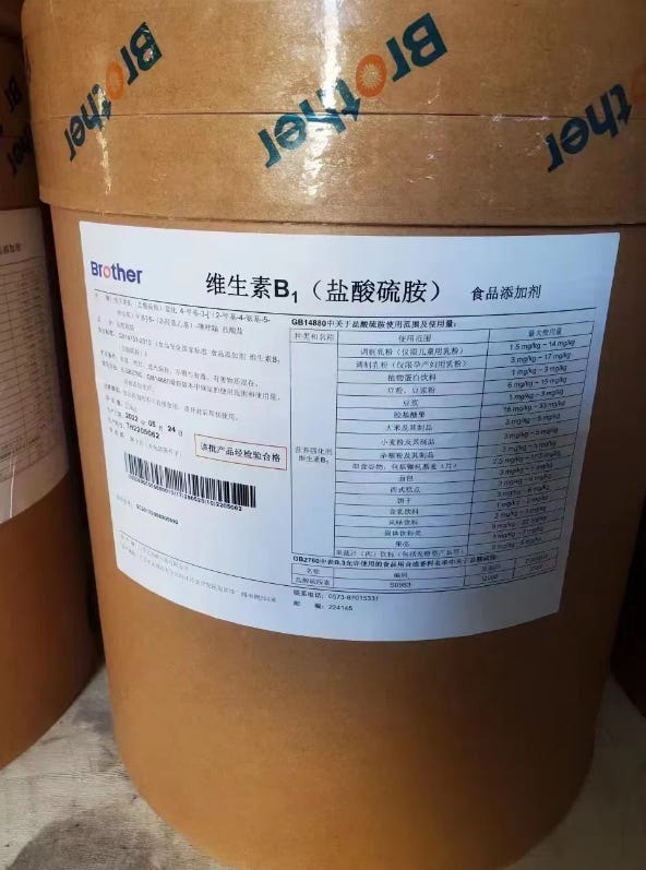 Thiamine mononitrate is made from thiamine hydrochloride, which itself is made from thiamine sulfate. You can buy pallets of it from China: