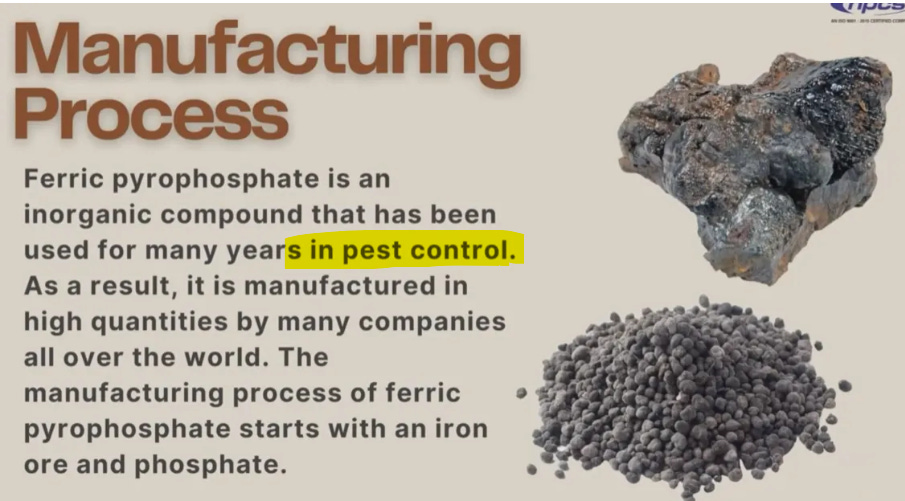Because these are toxic (hence the reason they kill insects), they must clean their Ferric Orthophosphate byproduct waste for us by adding an arsenic-removing agent and a heavy metal-removing agent.