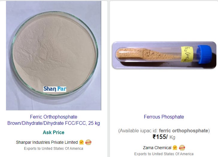 Now, let’s say you don’t have byproduct waste, so you can’t crank out Ferric Orthophosphate, you can instead make Ferric Pyrophosphate, an alternative food fortificant.