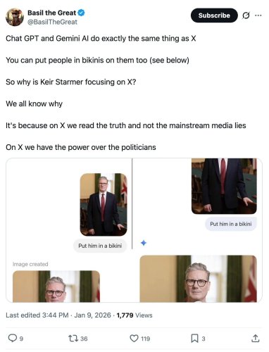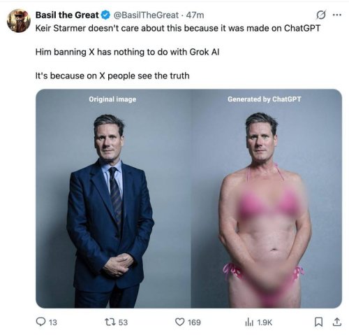 So even though there are likely millions of tools that can put a woman in a bikini, why is Starmer threatening to support the blocking of the entirety of X?