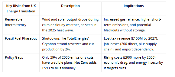 The North Sea’s decline, exacerbated by shutdowns like Gryphon’s (covered below), erodes domestic production without immediate alternatives, risking higher imports and vulnerability to global price shocks. Household impacts are already mounting. Net Zero-related costs added £593 to average energy bills in 2023/24, with projections of an additional £900 by 2030 as the renewables shift intensifies.