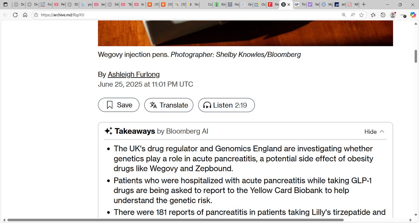 ‘UK Probes Genetic Link Between Obesity Drugs and Pancreas Damage’; I warn again about these GLP-1 agonists, be careful, use under guidance, these were NEVER to be as weight loss drugs these were TYPE